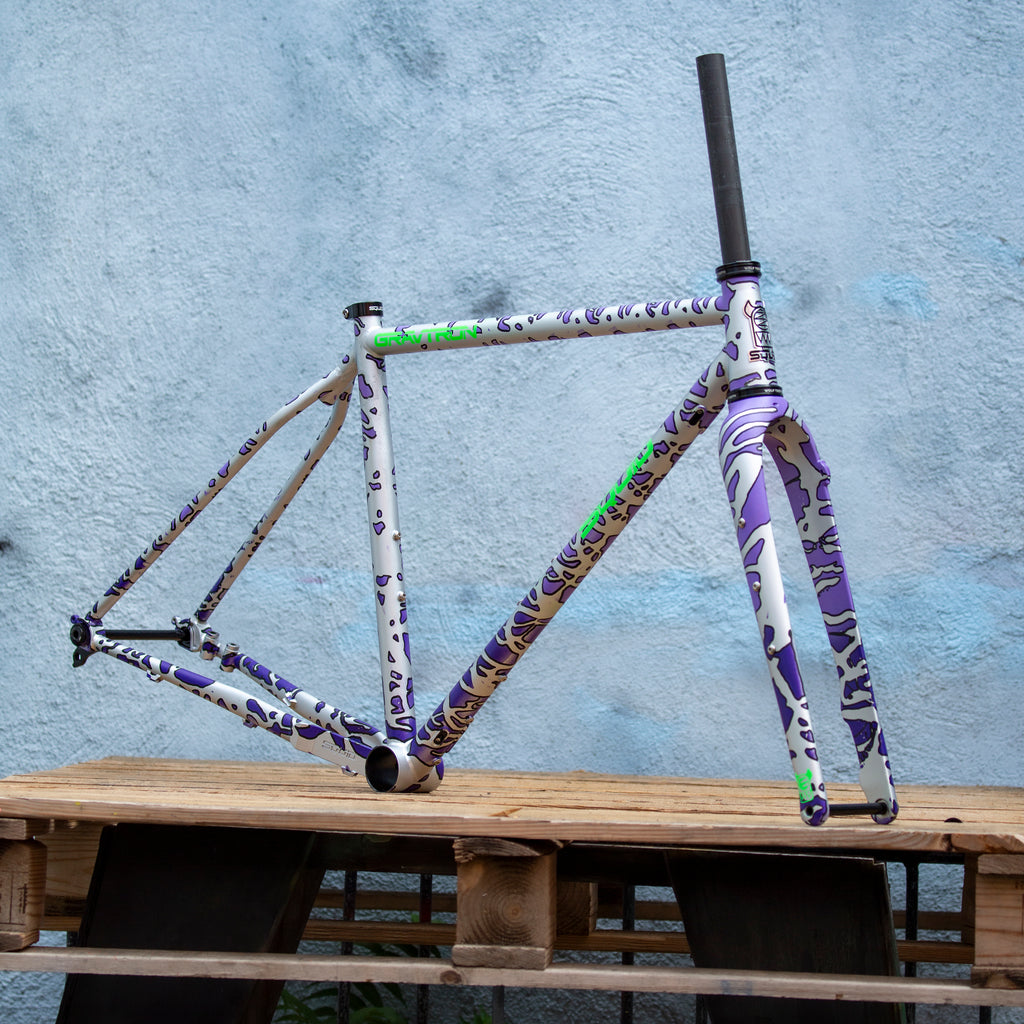 What is a 'Gravel Bike'? Is 'Gravel' even real? How far until the next snacc break? These are the questions you can ask yourself on the GRAVTRON as you pedal to your next campsite loaded up with all your gear, or cruise along a levee with a spirited group ride, or are ripping singletrack with your friends. This is our most versatile bike, capable of loaded bikepacking or racing cross and all the roads in between.